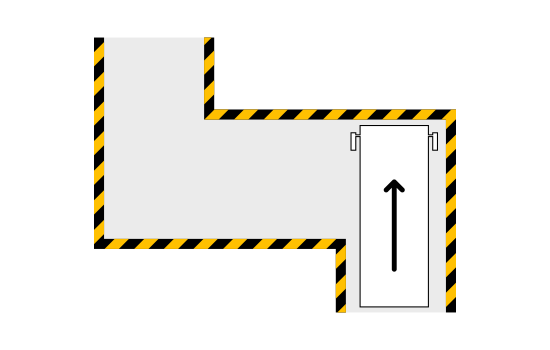 1. 왼쪽 무릎 부분을 정면에 있는 연석의 한칸 반 정도 맞춰서 진입
