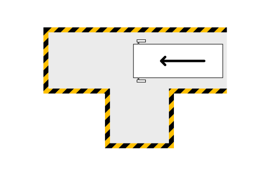 2. 좌측 황색선과 어깨부분을 맞추고 핸들을 좌측으로 다 감은후 좌회전